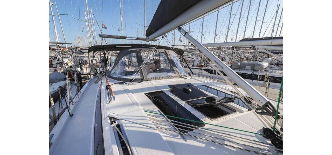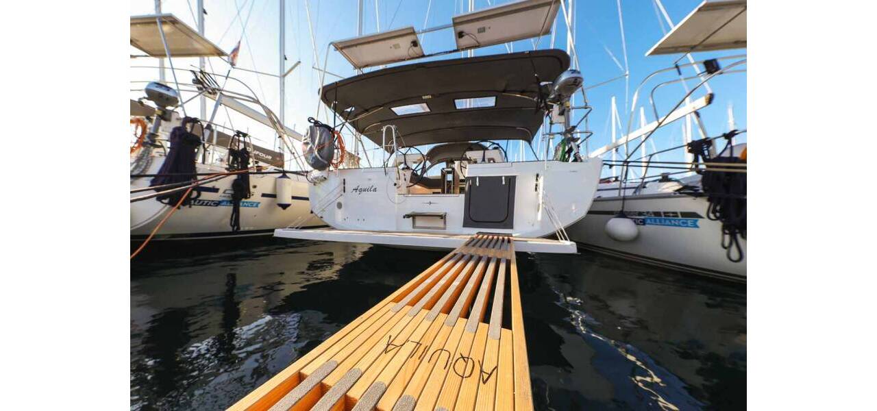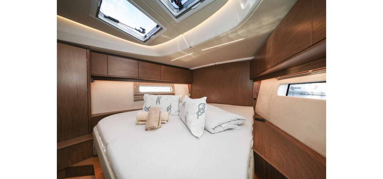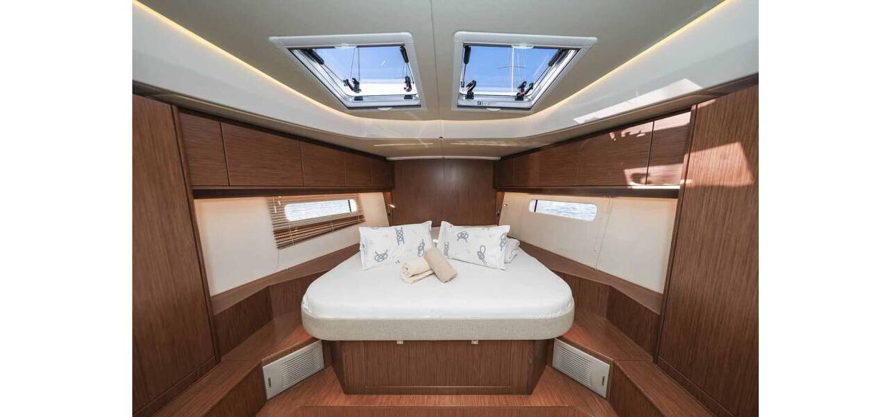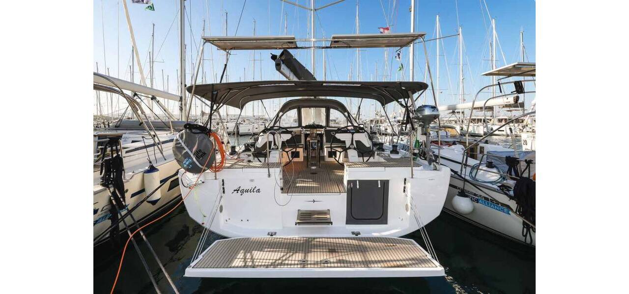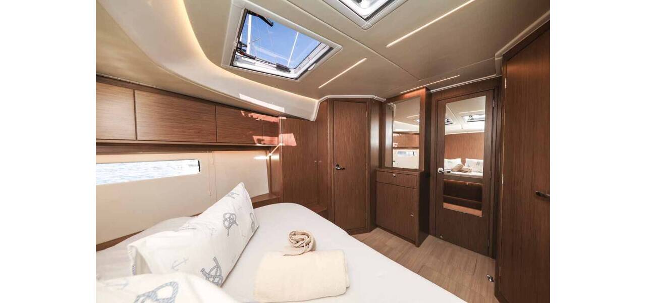 Segelyacht Bavaria C46 Aquila, aus 2024. Sie verfügt über 4 Kabinen und bietet Platz für 8 + 2 Personen bzw. verfügt über 2 Toiletten.