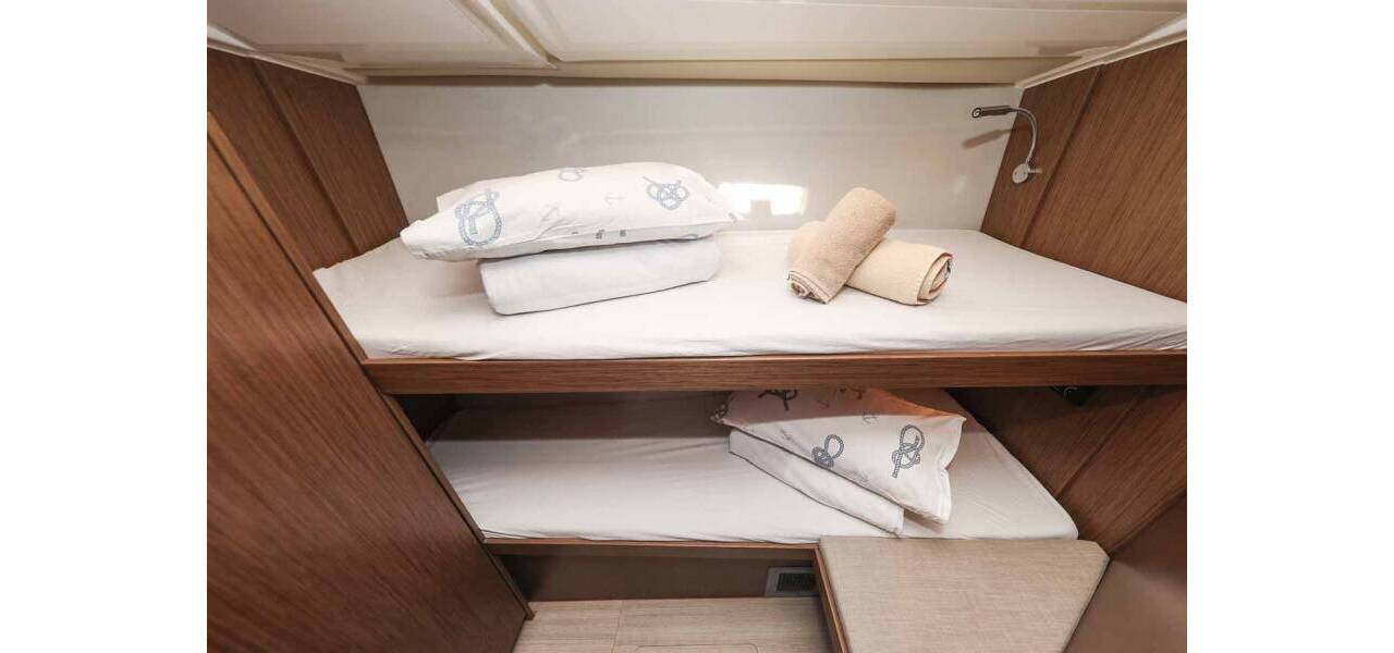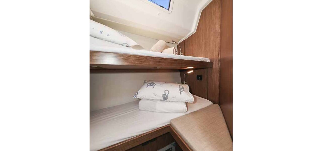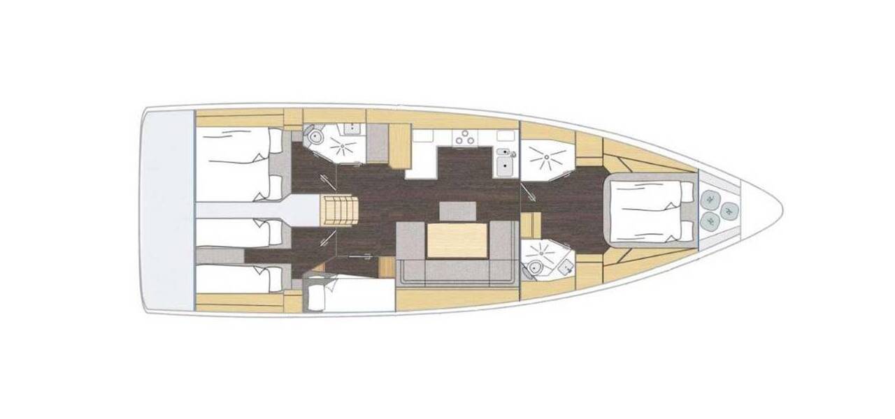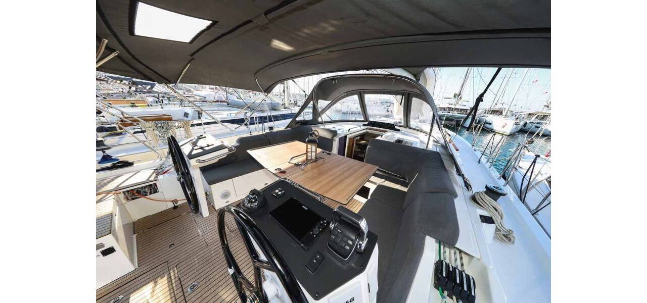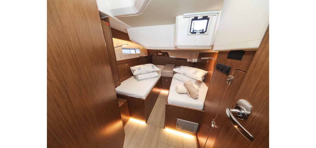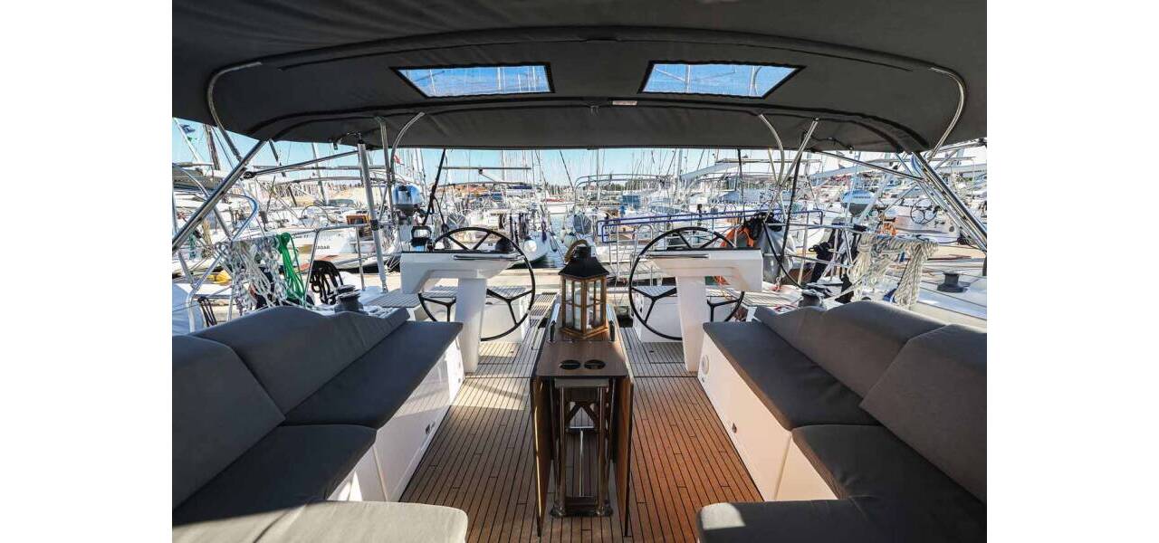 Segelyacht Bavaria C46 Aquila, aus 2024. Sie verfügt über 4 Kabinen und bietet Platz für 8 + 2 Personen bzw. verfügt über 2 Toiletten.