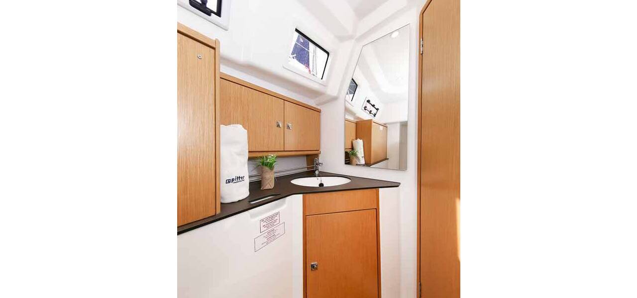 Segelyacht Bavaria Cruiser 34 Chiara, aus 2017. Sie verfügt über 2 Kabinen und bietet Platz für 4 + 2 Personen bzw. verfügt über 1 Toiletten.