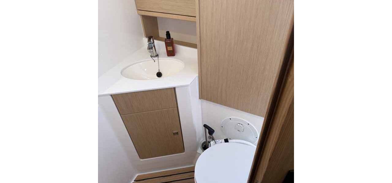 Segelyacht Bavaria Cruiser 46 Style Casandra, aus 2024. Sie verfügt über 4 Kabinen und bietet Platz für 8 + 1 Personen bzw. verfügt über 3 Toiletten.