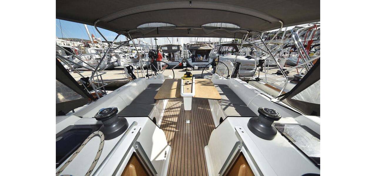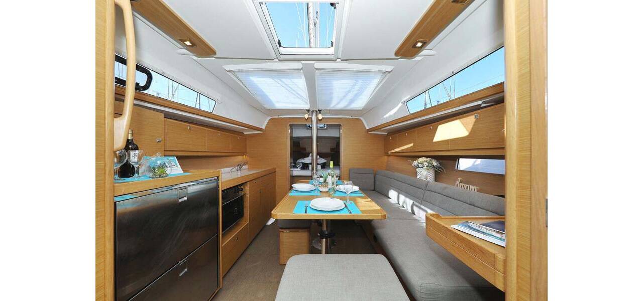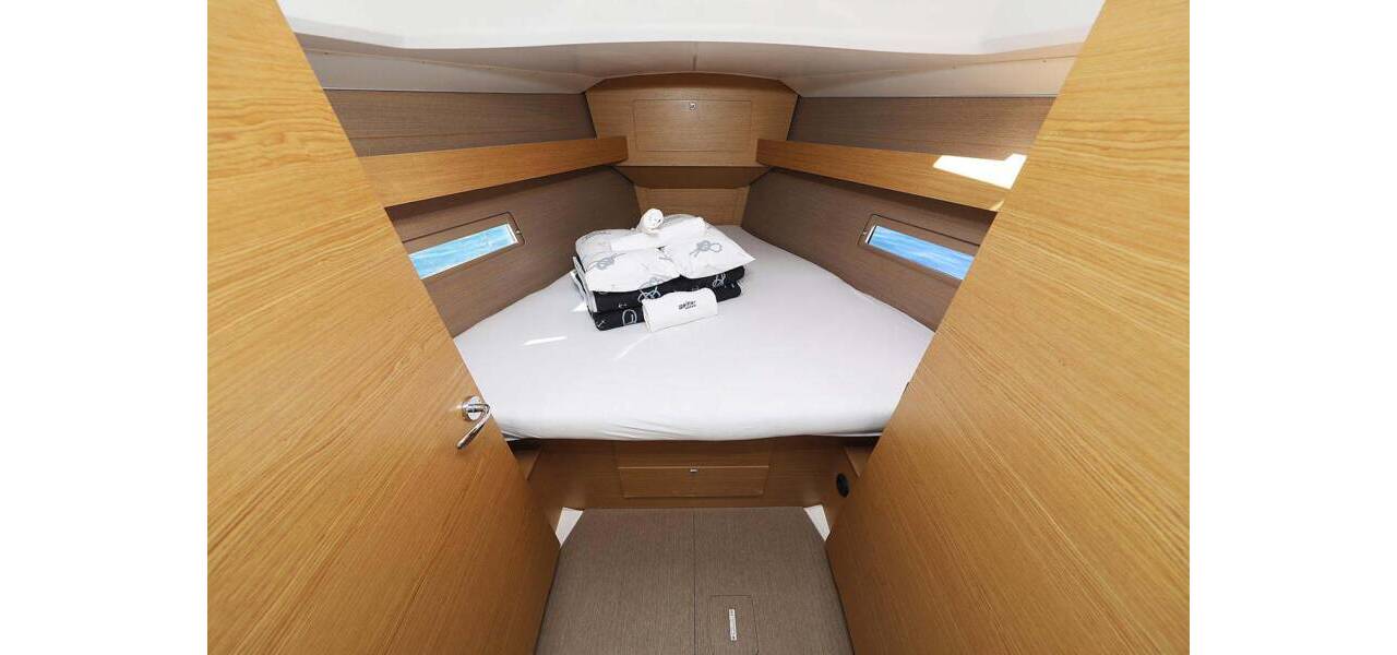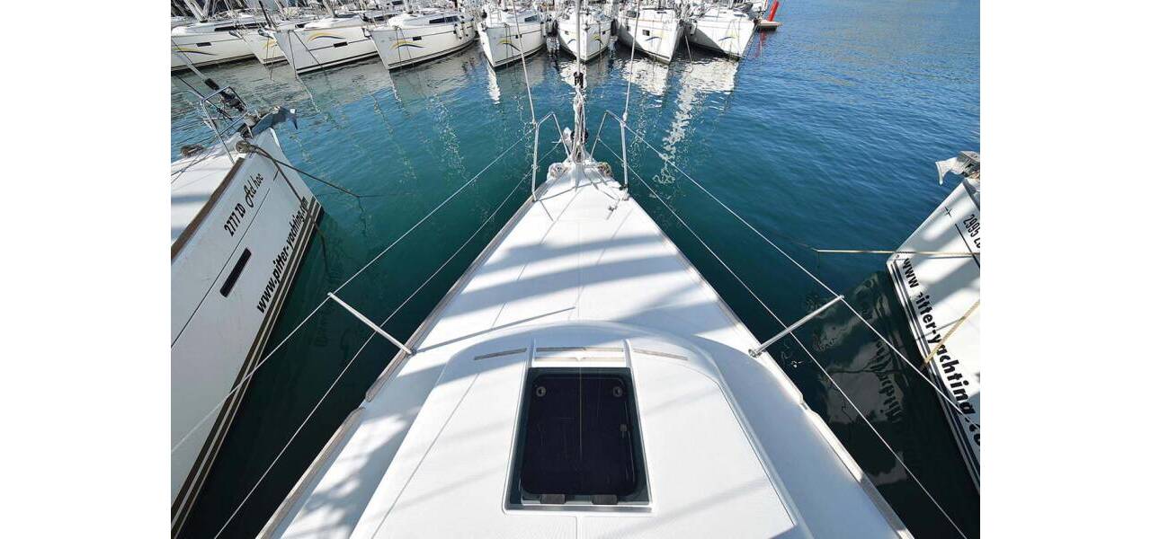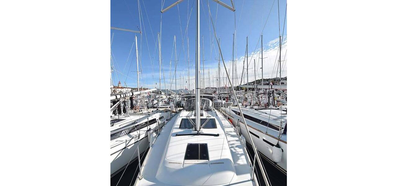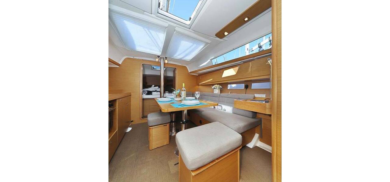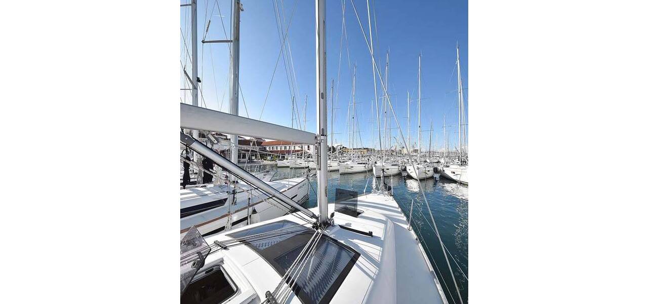 Segelyacht Dufour 382 GL Alegria, aus 2016. Sie verfügt über 3 Kabinen und bietet Platz für 6 + 2 Personen bzw. verfügt über 2 Toiletten.