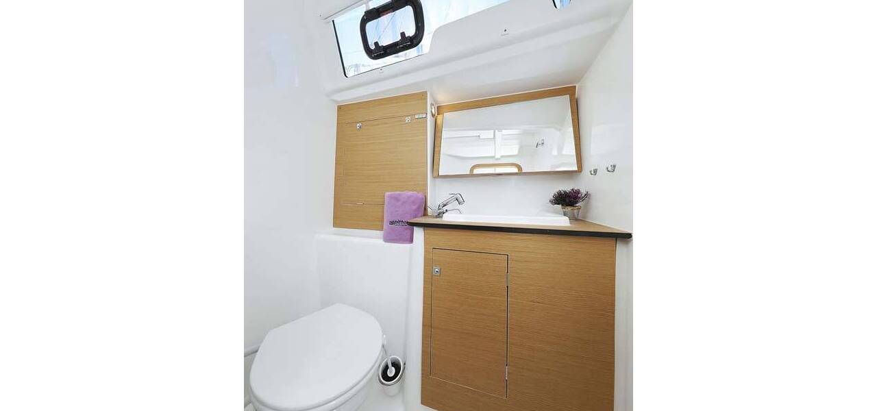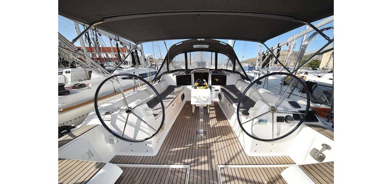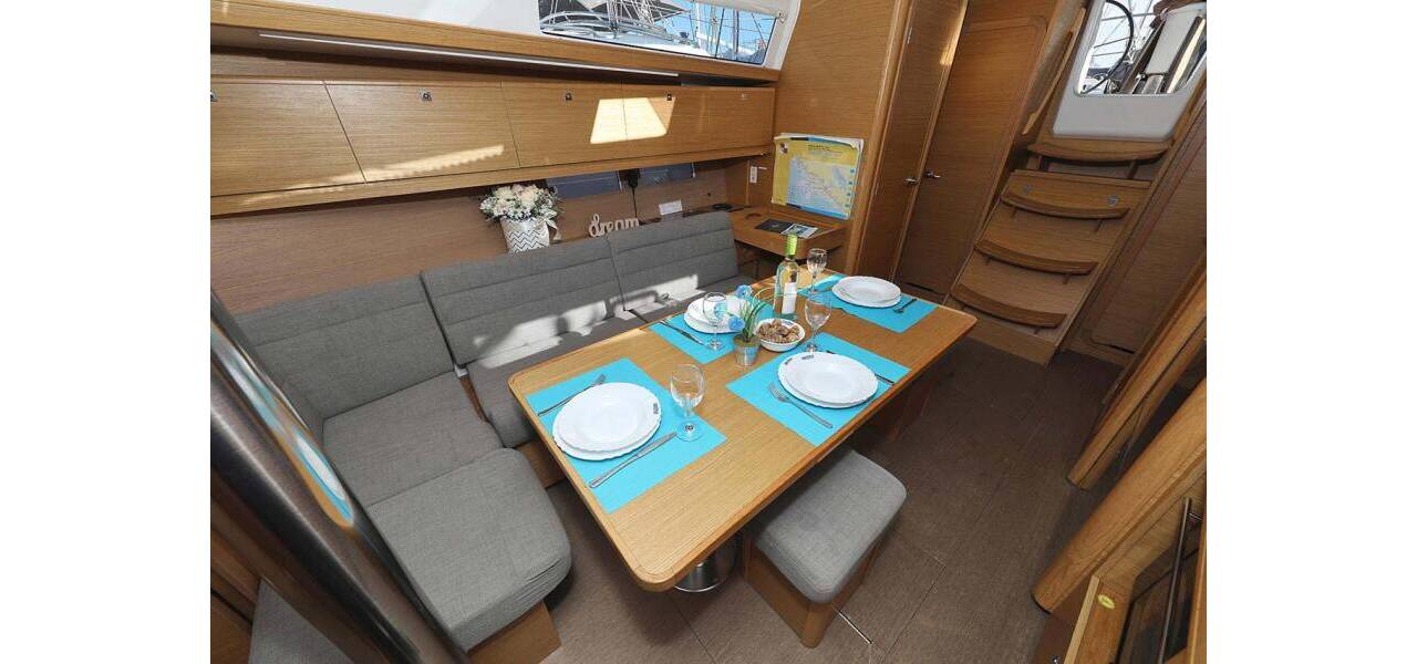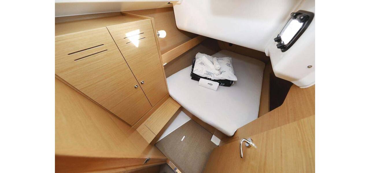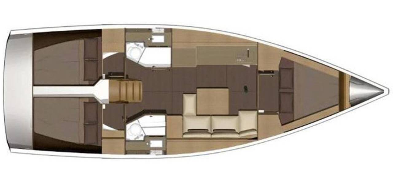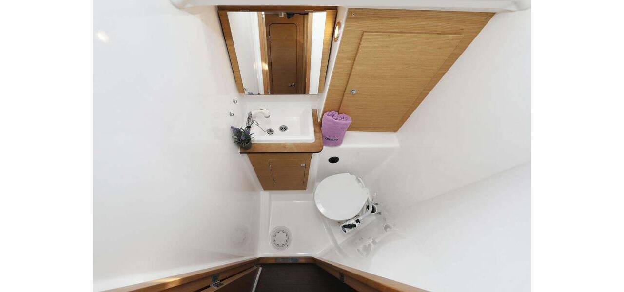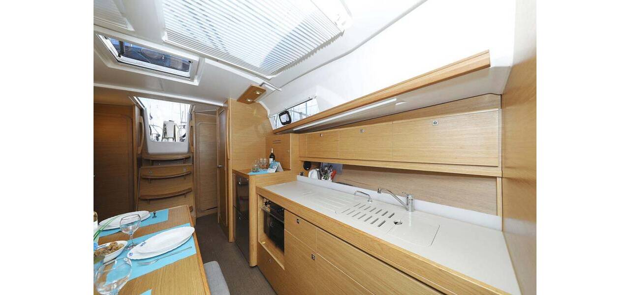 Segelyacht Dufour 382 GL Alegria, aus 2016. Sie verfügt über 3 Kabinen und bietet Platz für 6 + 2 Personen bzw. verfügt über 2 Toiletten.