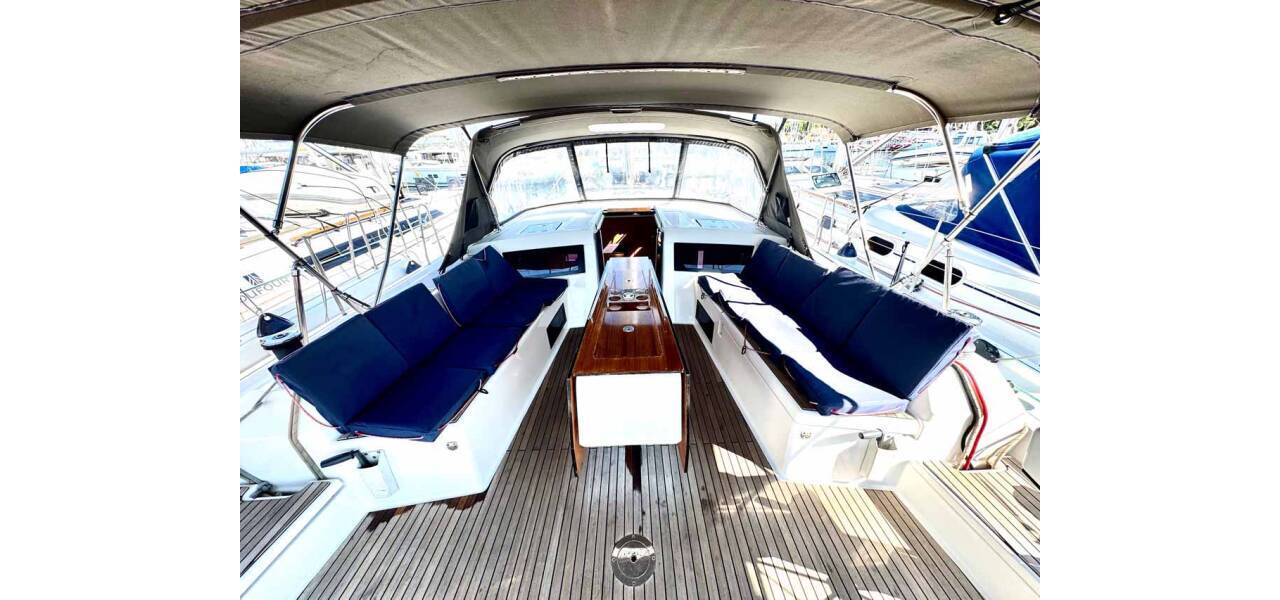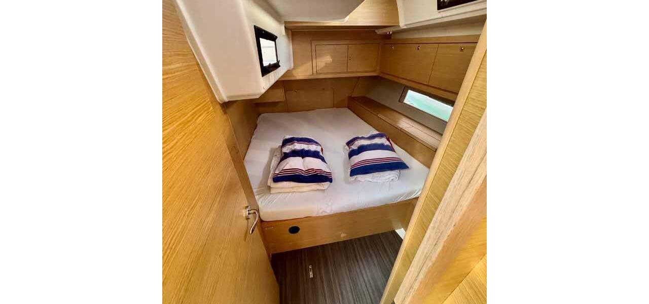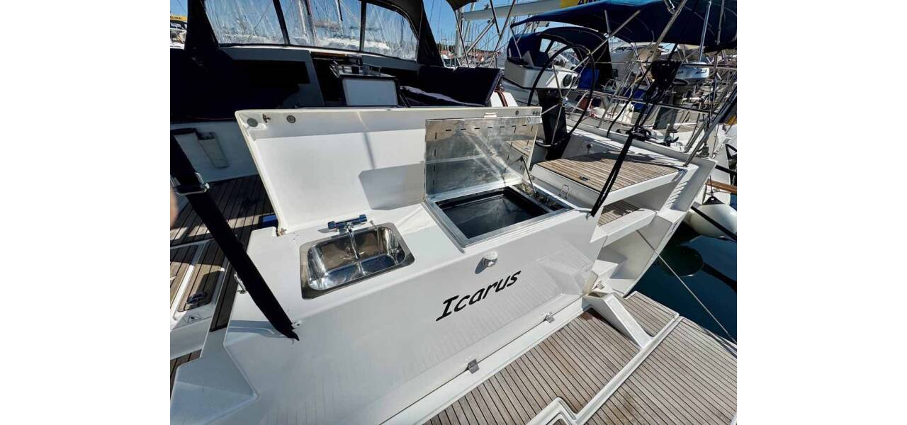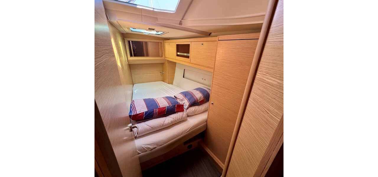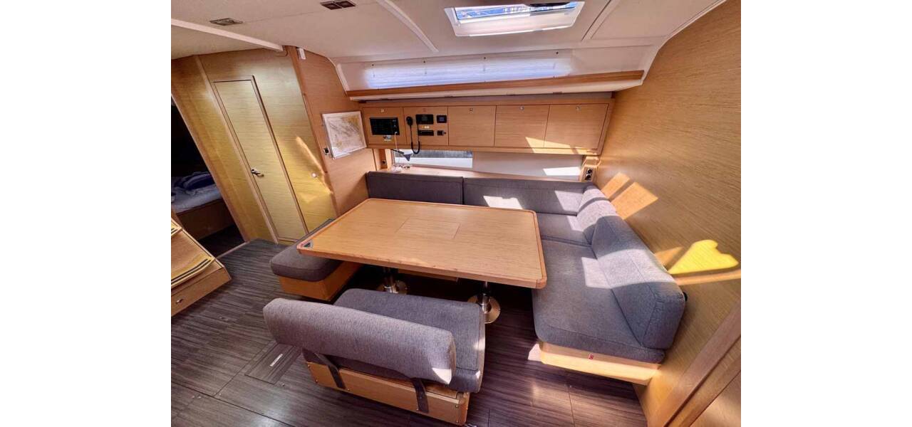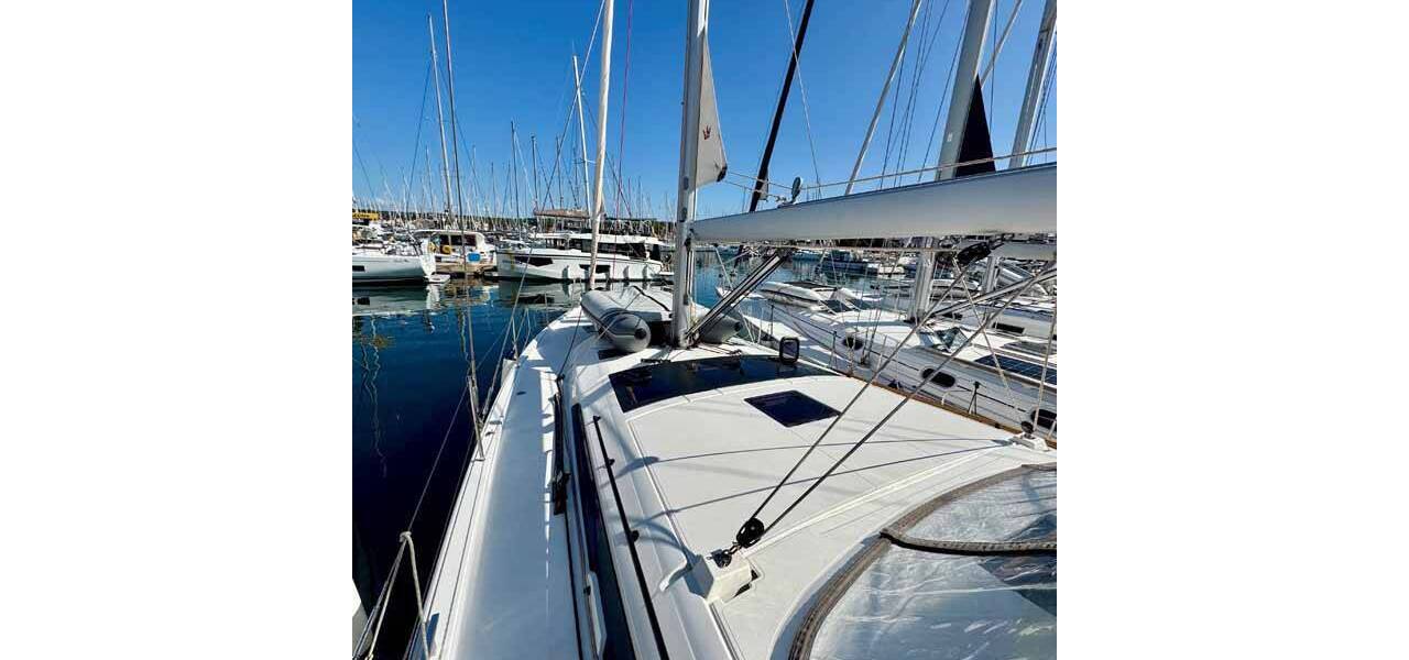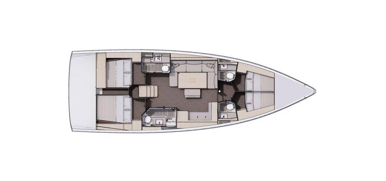 Segelyacht Dufour 470 Icarus, aus 2023. Sie verfügt über 4 Kabinen und bietet Platz für 8 + 2 Personen bzw. verfügt über 4 Toiletten.
