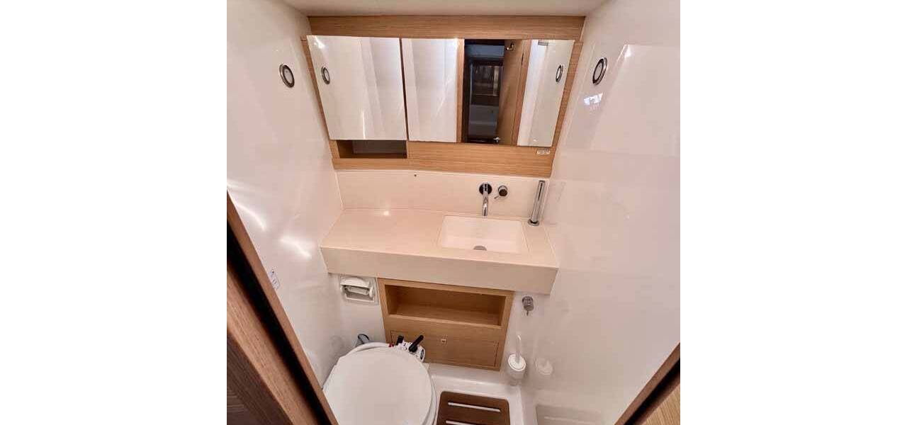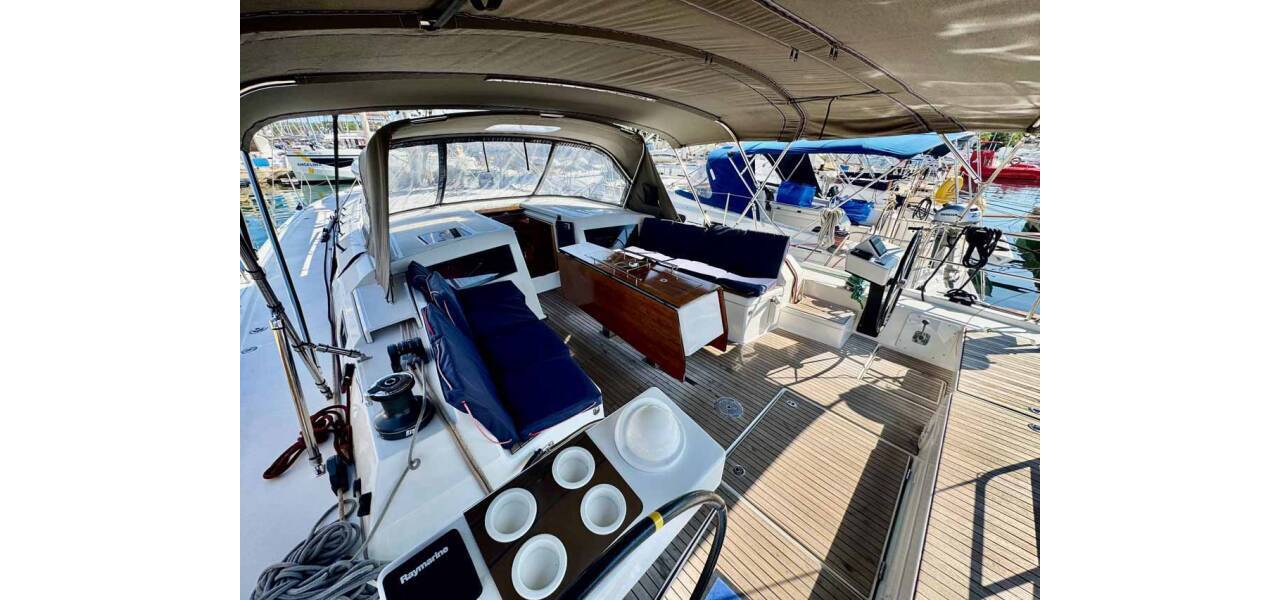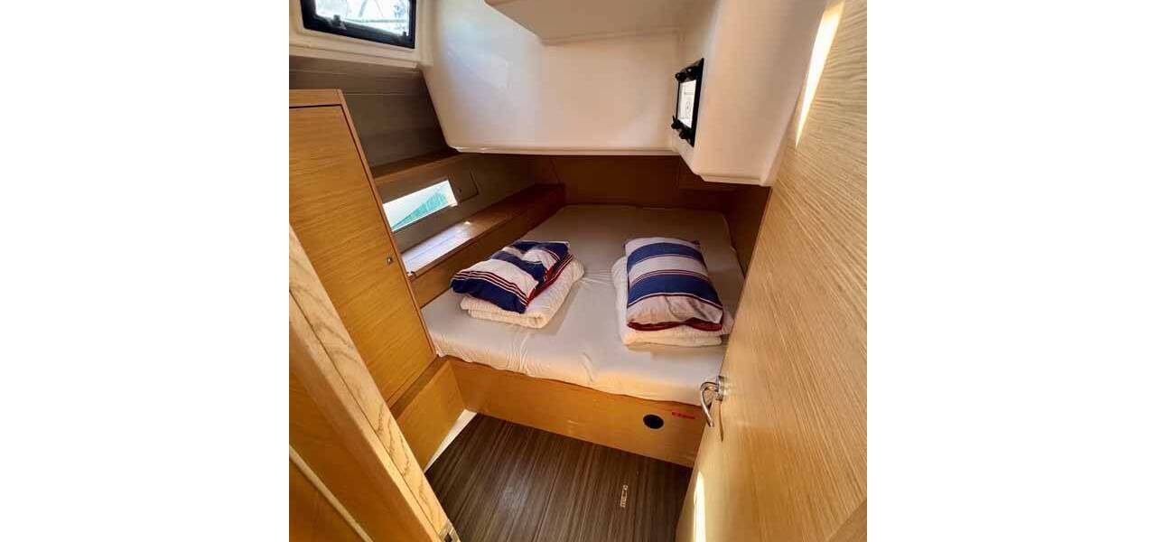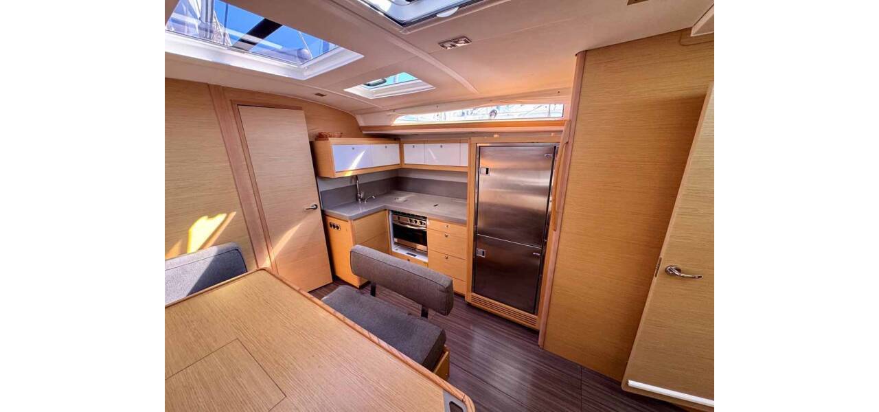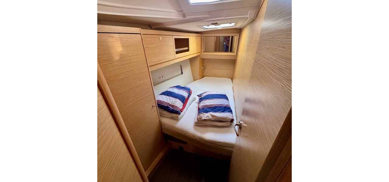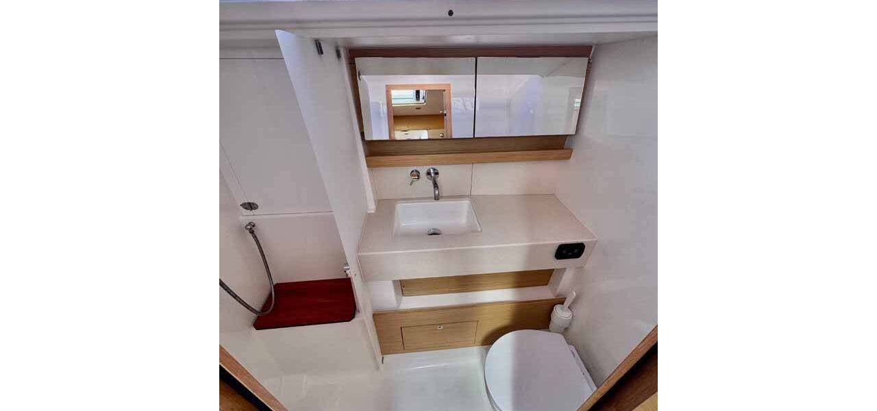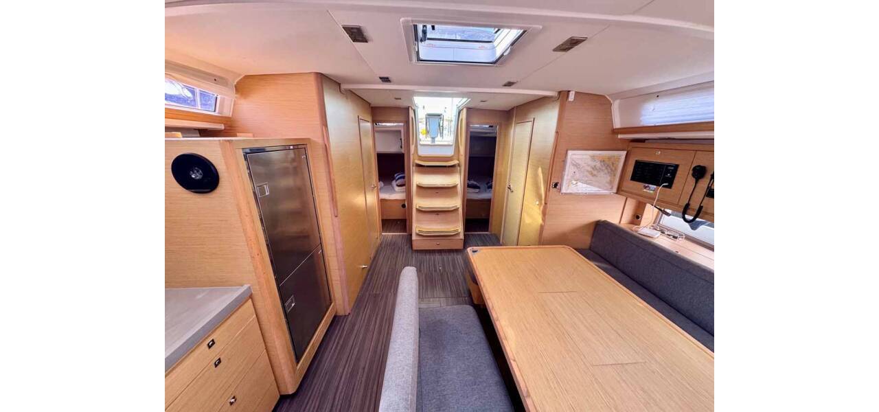 Segelyacht Dufour 470 Icarus, aus 2023. Sie verfügt über 4 Kabinen und bietet Platz für 8 + 2 Personen bzw. verfügt über 4 Toiletten.