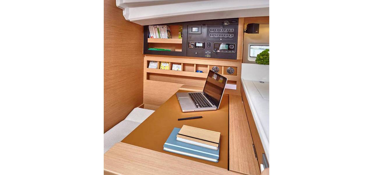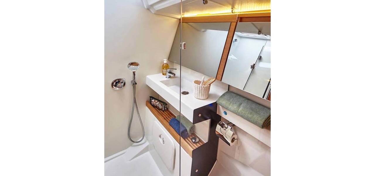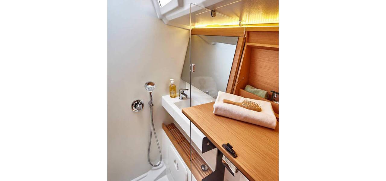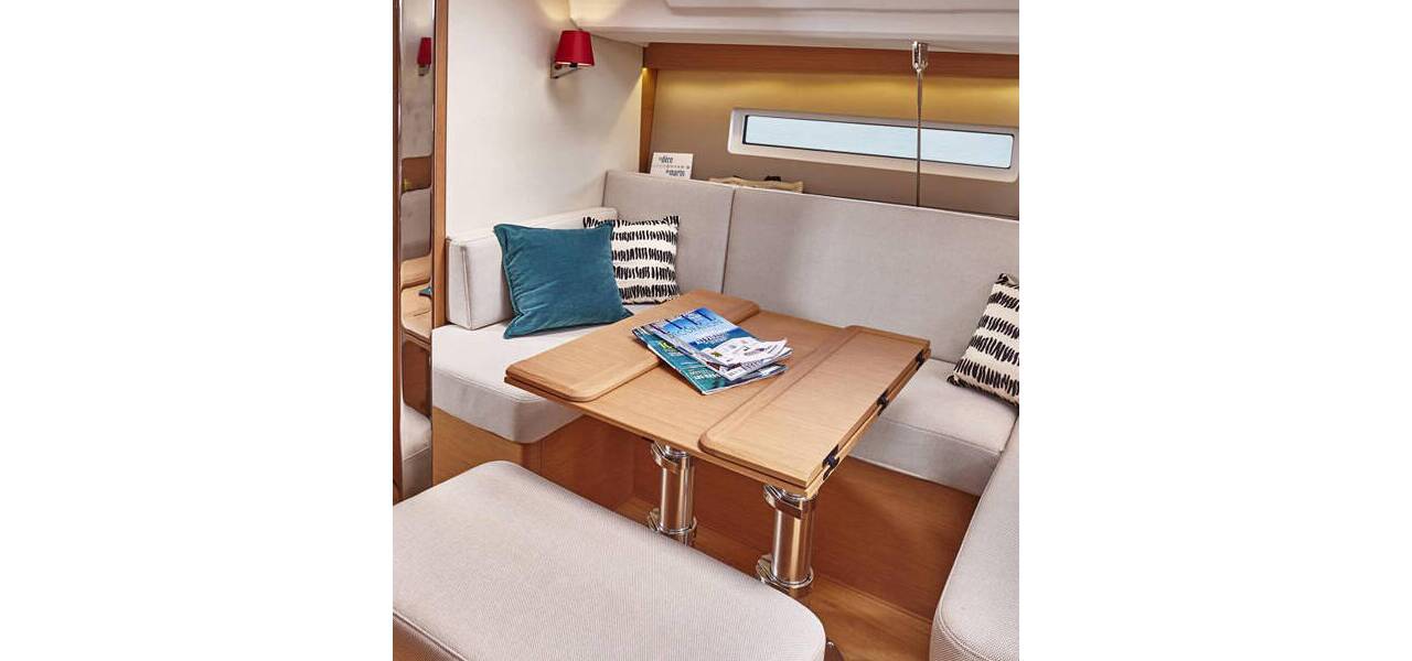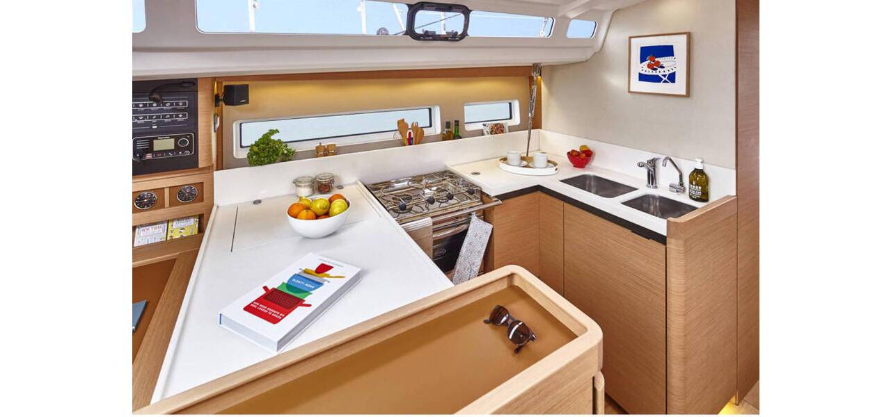 Segelyacht Sun Odyssey 440 Scorpio, aus 2023. Sie verfügt über 4 Kabinen und bietet Platz für 8 + 1 Personen bzw. verfügt über 2 Toiletten.