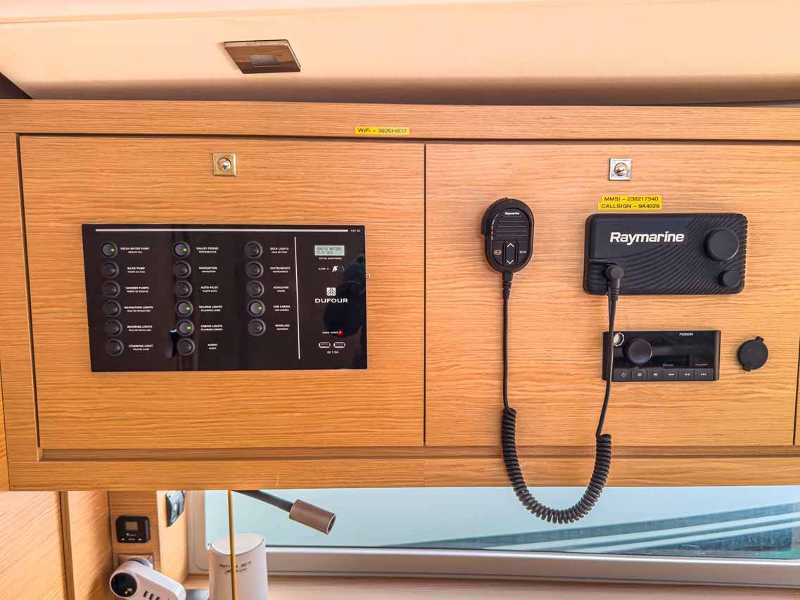 The Dufour 470 performance „Easy Eleven“ is equipped with a mainsail and a genoa as well as a Radar, Bimini top, Autopilot, Sprayhood, Heating, Teak cockpit, GPS chart plotter - cockpit.