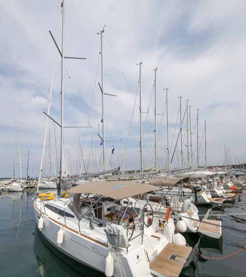 El Sun Odyssey 349 „Polly Fun“ ofrece un confort especial con las siguientes características de equipamiento: Cojines de bañera, Plataforma de baño, Inversor, Paneles solares.