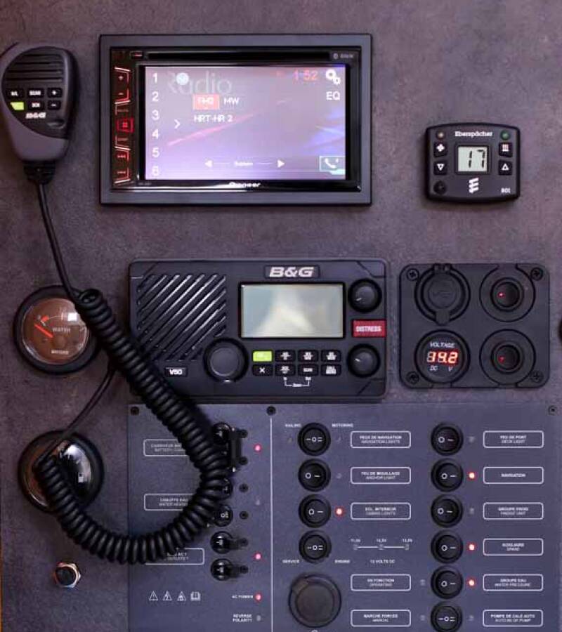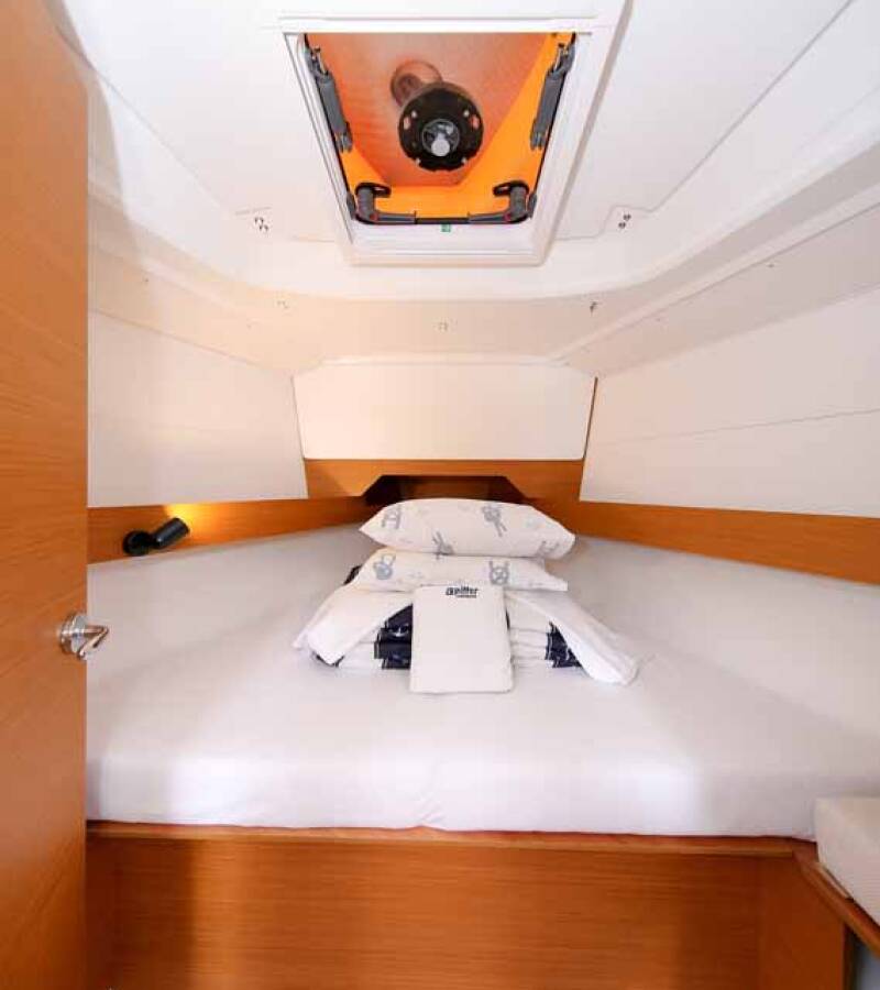 El Sun Odyssey 349 „Polly Fun“ está equipado con una vela mayor y un génova , así como con un Bimini top, Piloto automático, Sprayhood, Calefacción, Cabina de teca, GPS plotter plotter - cabina.
