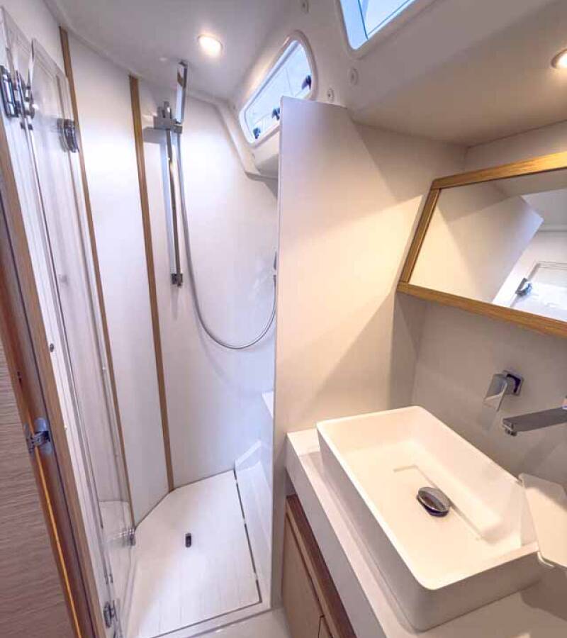 Le Grand Soleil 44 Performance „Destiny“ offre un confort particulier grâce aux équipements suivants : Hélice d'étrave, Inverseur, WC électrique, Panneaux solaires.