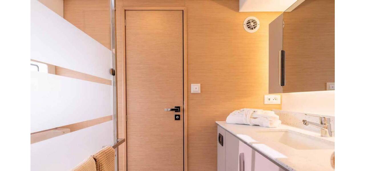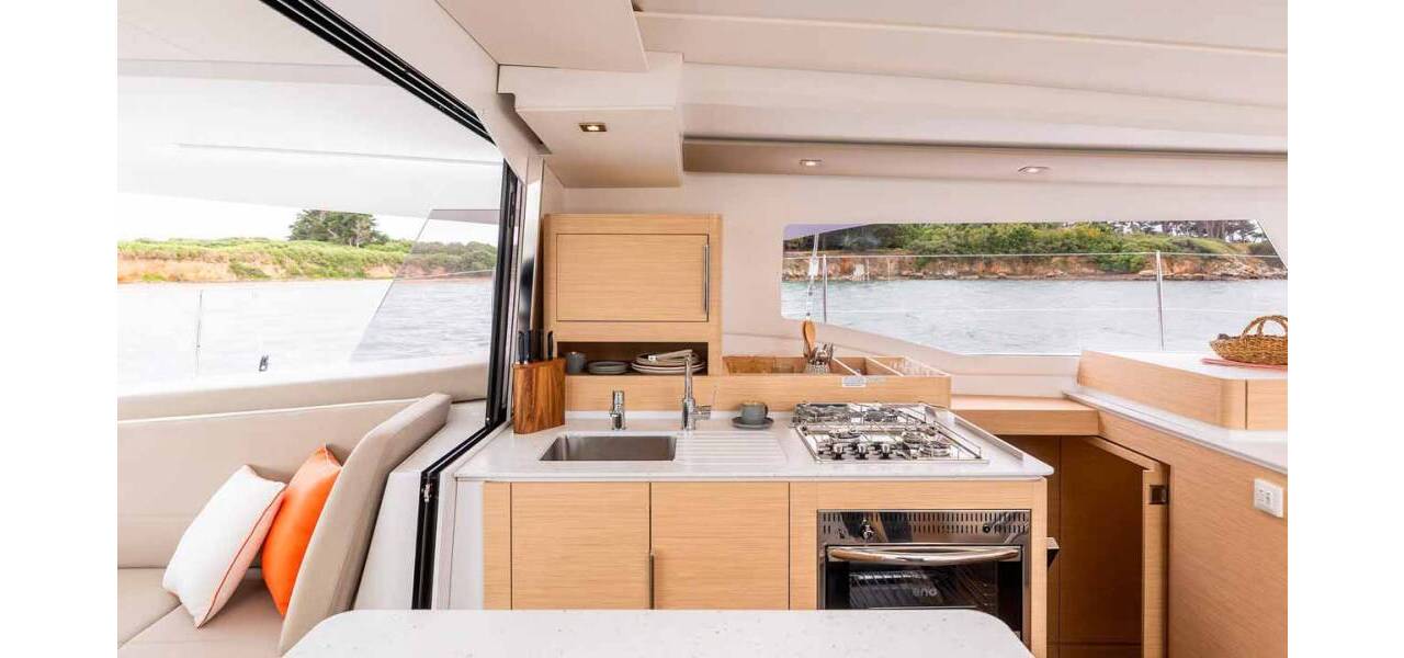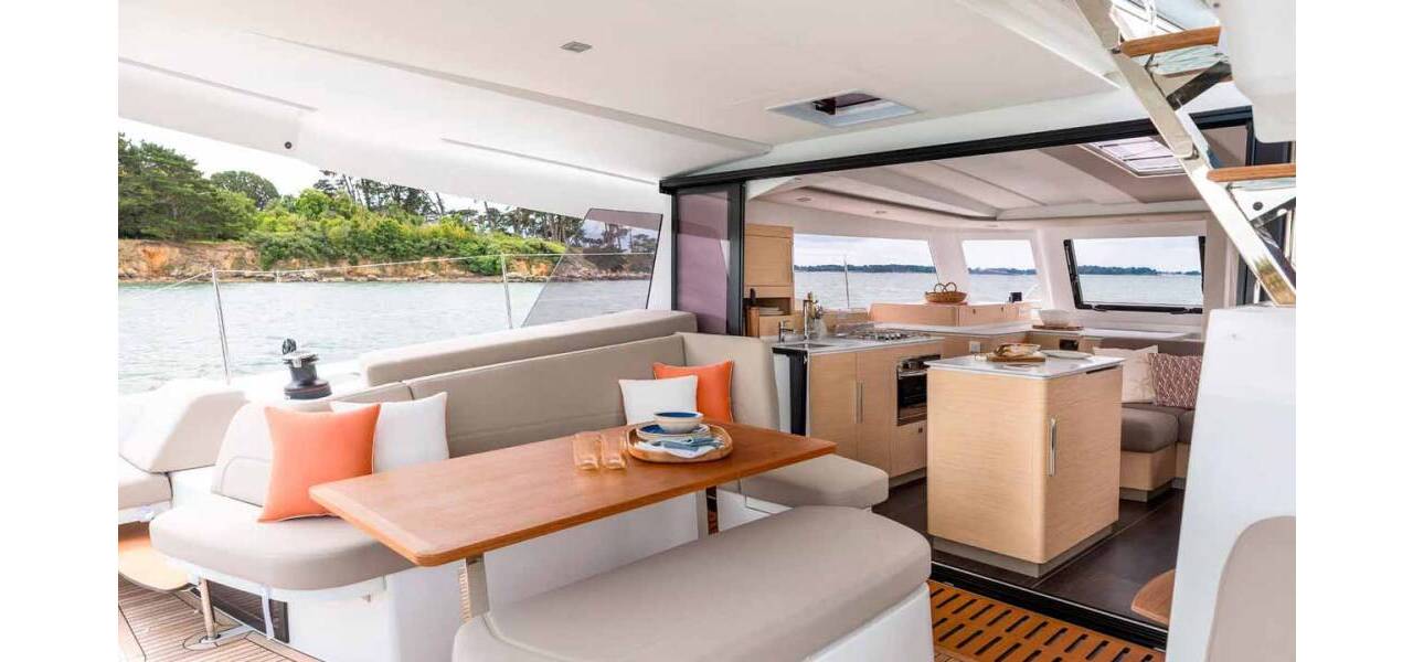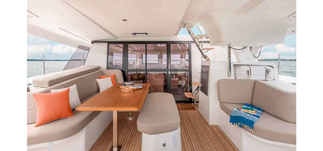 Catamaran Fountaine Pajot FP 41 Quatuor 4 Auriga, costruito in 2026. Ha 4 + 1 cabine, può ospitare 8 + 2 + 1 persone e ha 4 toilets.
