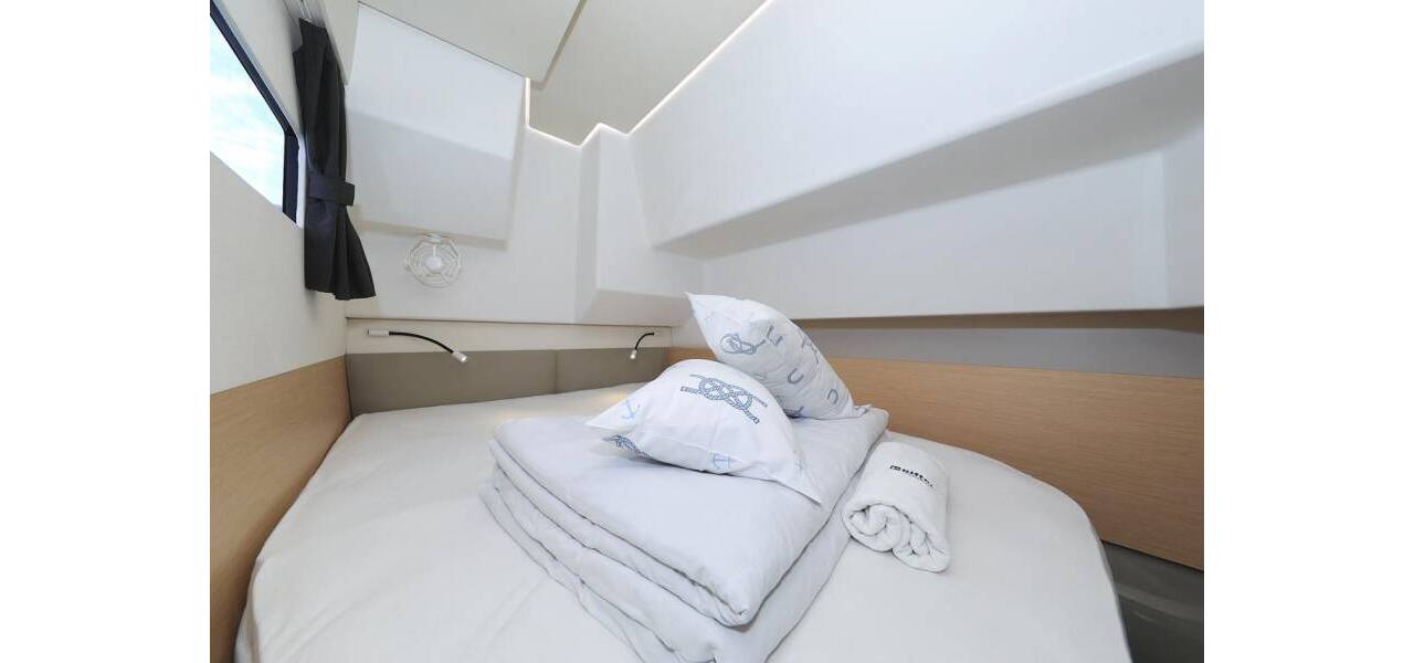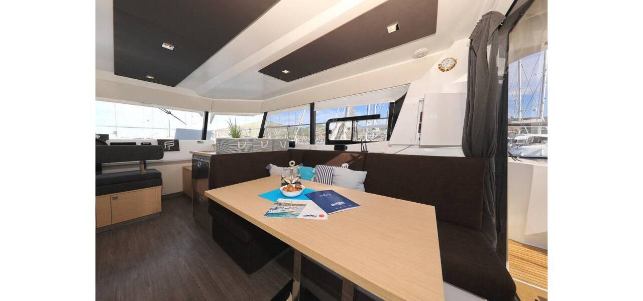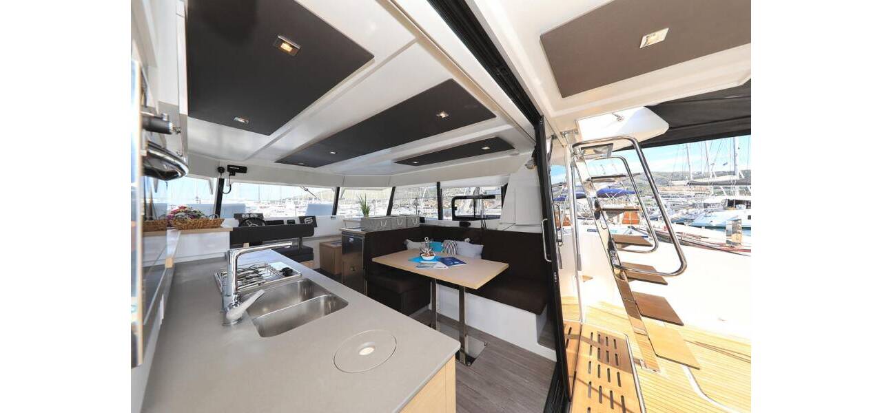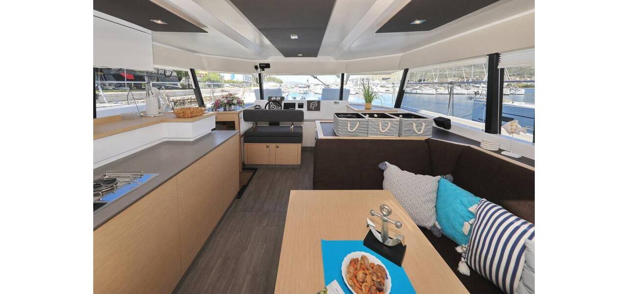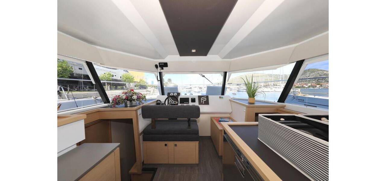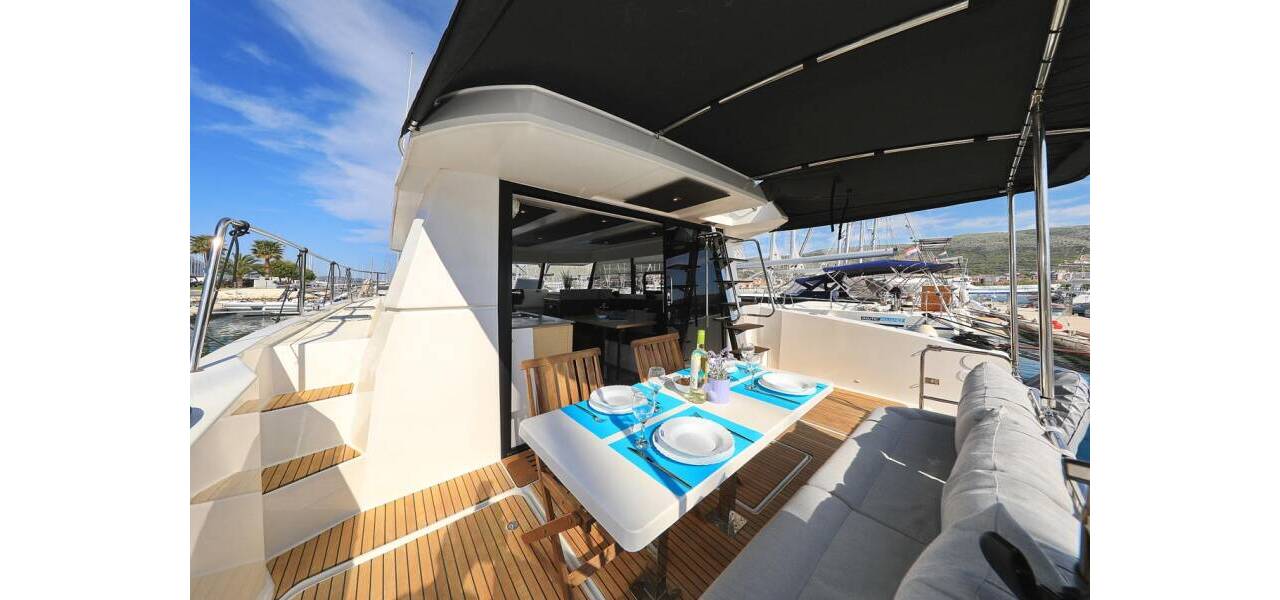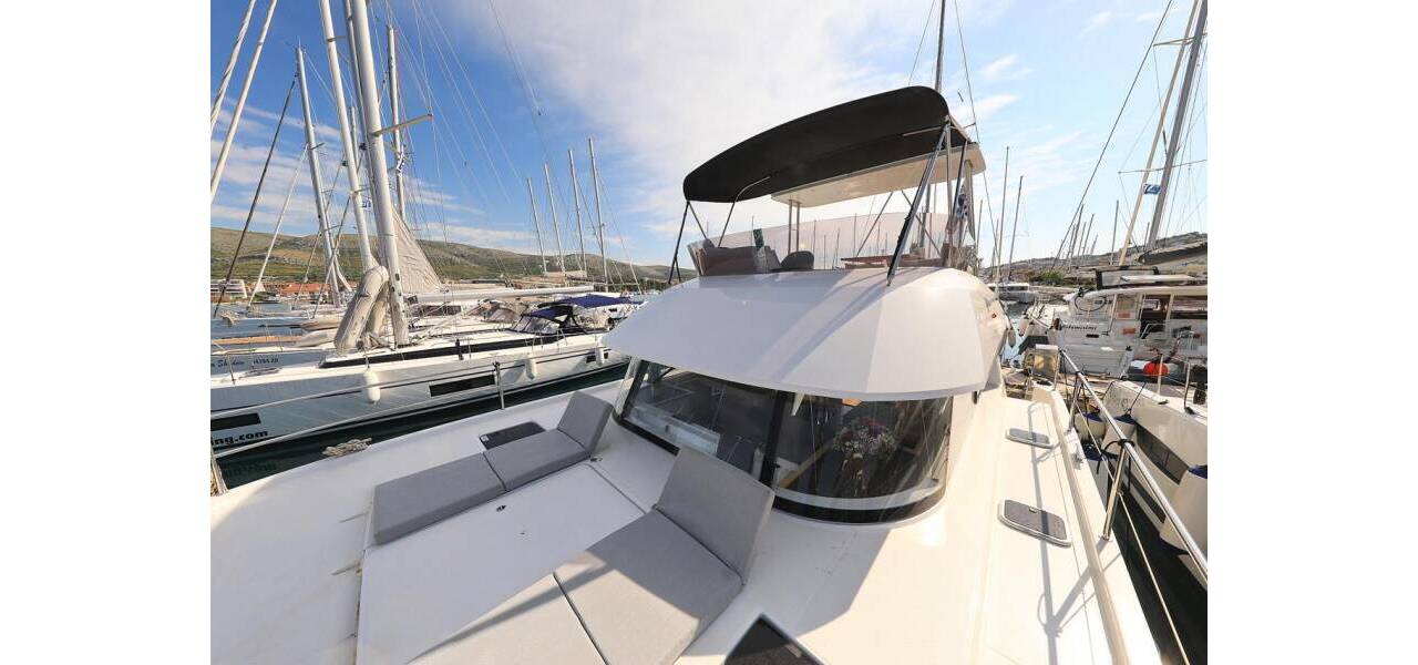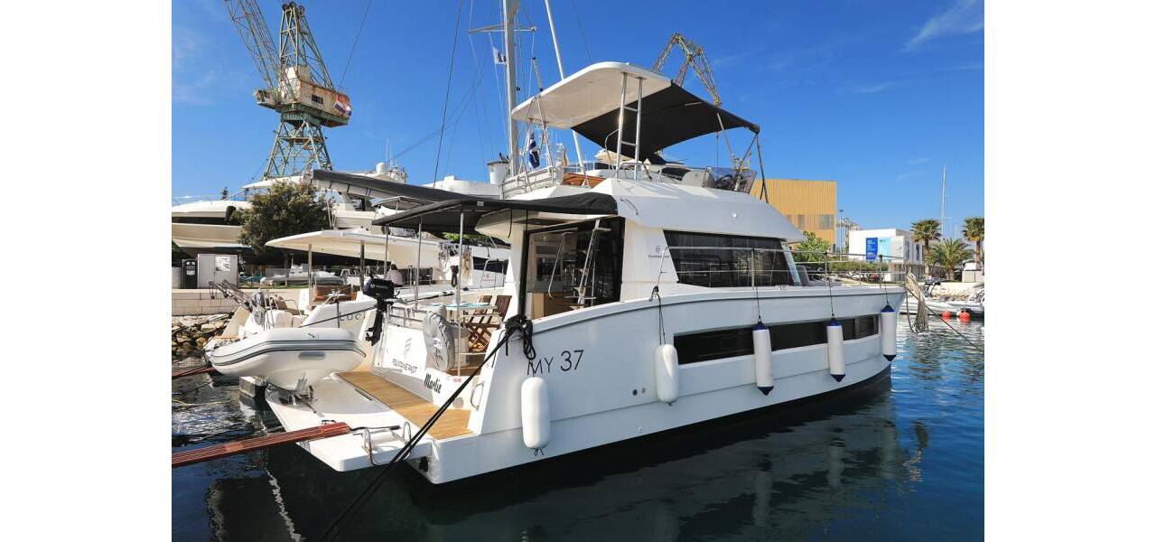 Power catamaran Fountaine Pajot MY 37 Marlie, costruito in 2020. Ha 4 cabine, può ospitare 8 + 1 persone e ha 2 toilets.