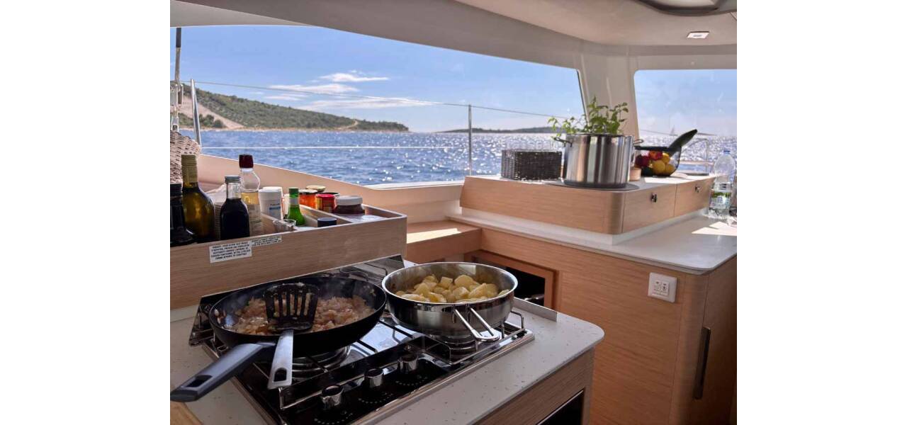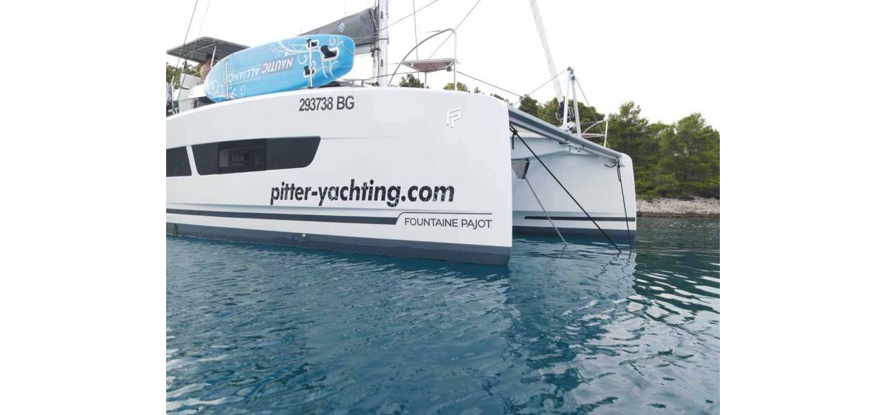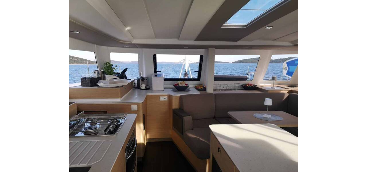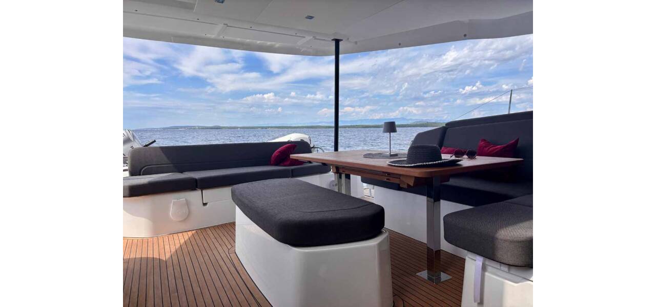 Catamaran Fountaine Pajot FP 41 Quatuor 3 Acamar, costruito in 2025. Ha 4 + 1 cabine, può ospitare 8 + 1 + 1 persone e ha 3 toilets.